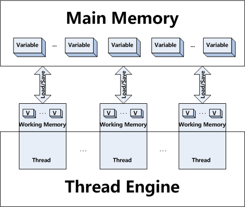 volatile의 용도는 다중 스레드 프로그래밍에서 변수 메모리의 위치를 스레드의 로컬(위의 Working Memory)이 아니라 Main Memory에 생성함으로서 일관성있는 데이터의 참조가 가능한 변수를 만들기 위함입니다.