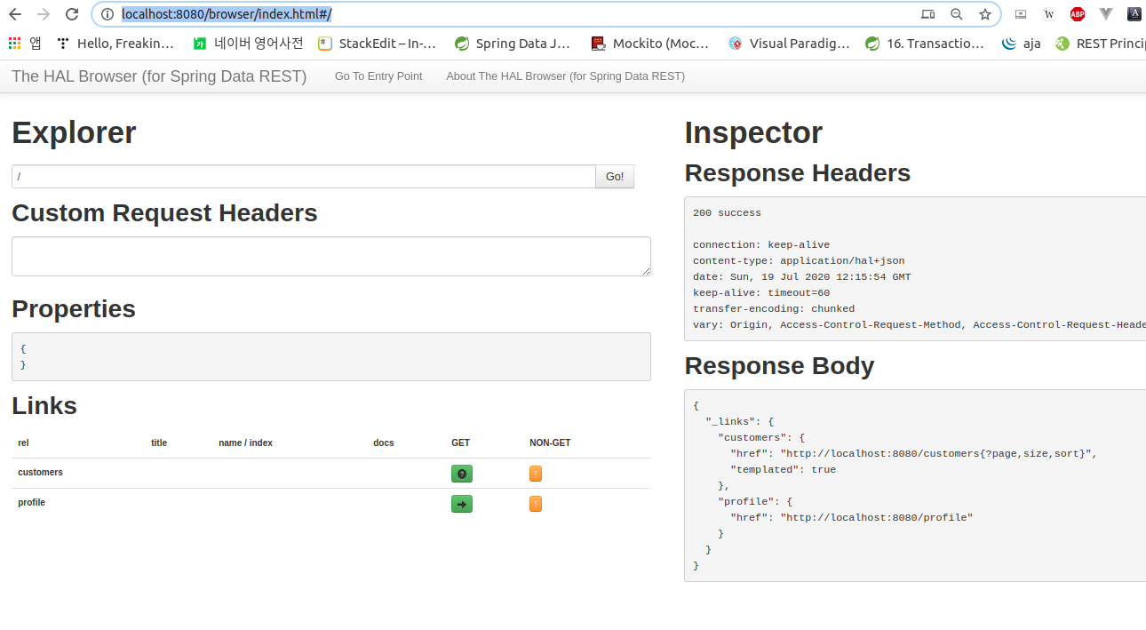 링크들을 테스트하면 Spring HAL browser를 하거나 PostMan 등을 사용해야 한다.
