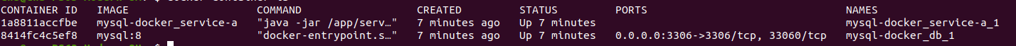 mysql-docker-db_1 이라는 이름의 mysql 컨테이너가 실행중이다.